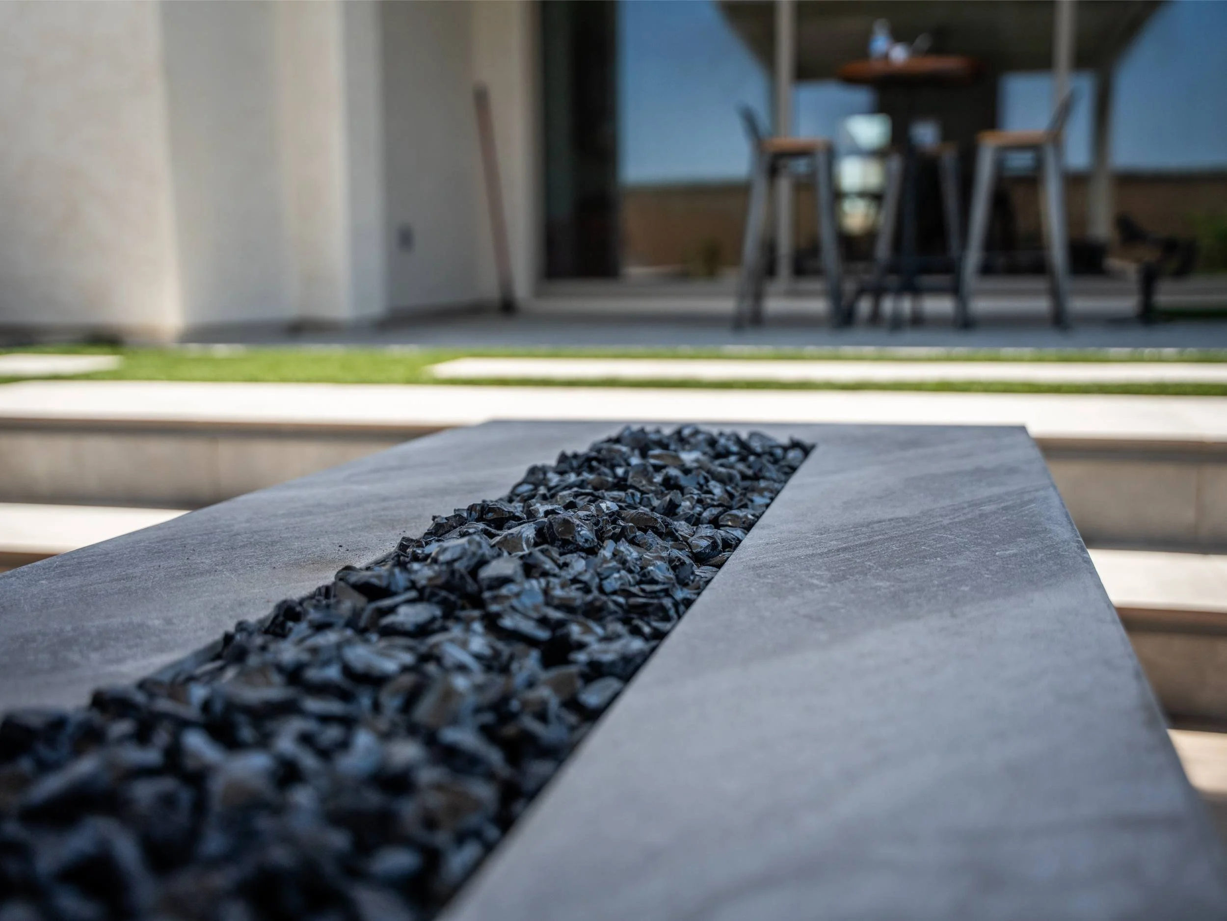 Materials are selected for steady outdoor performance, but the heart of the design is how the space feels once the flames are lit.
